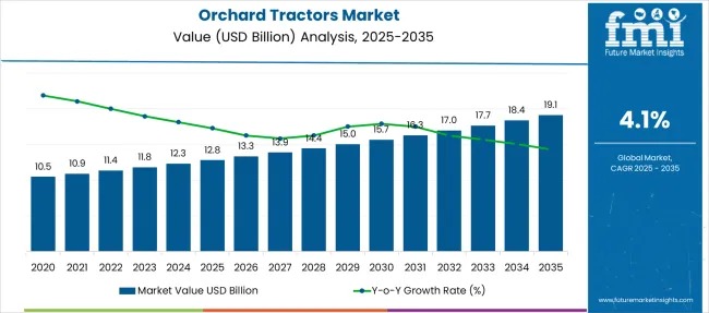 NEWARK, DE, UNITED STATES, November 24, 2025 /EINPresswire.com/ -- The global Orchard Tractors Market, valued at USD 12.8 billion in 2025, is poised to expand to USD 19.1 billion by 2035, registering a CAGR of 4.1% over the forecast period. Growth momentum is driven by rapid agricultural mechanization, rising orchard acreage, and increasing demand for compact, high-efficiency machinery capable of operating within narrow and densely planted orchard environments.